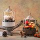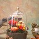 以永生雪松為基底,搭配聖誕紅玫瑰、酒盅花與迷你南瓜裝飾,呈現濃厚的節慶氛圍。