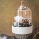 永生絨毛雪松與白玫瑰構成雪景般的底蘊,松果、兔尾草與法國白梅帶來細緻的冬季層次。
