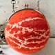 本体は羊毛を広げ球体の型に巻き、お湯と洗剤をかけてビニール手袋をつけて手で擦りフェルト化、本体の生地を制作しています。生地からの制作の為、球体の生地に仕上がっています。
