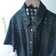 尋寶古著-黑色方格拼接圓點透膚雪紡襯衫