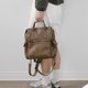 Supportingrole簡約多隔層多口袋真皮後背包 復古咖啡