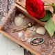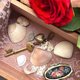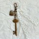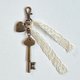 🗝️ An antique key pendant, a heart rocket pendant that opens on both sides, and lace decorations.