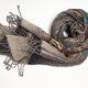 北印度克什米爾的圍巾雖然乍看比較花俏,有很多佩斯利腰果花等圖騰與顏色鮮豔的繡線或釘珠,但是他當圍巾繞起來配戴時,圖案就會低調很多,留下一種色塊和片段的特色氛圍印象感,又有很多精緻值得細細品味的細節。所以我們圍巾都會模擬繞起來配戴的樣子或繞成一顆球讓您可以想像並參考配戴起來大約會是什麼樣子。