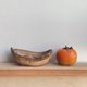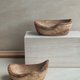 北非橄欖木手工製作而成的船型碗,它的邊緣是保留樹皮不規則的設計,非常質樸的感覺,適合日常使用或作為家居裝飾。