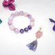 嚴選紫色系寶石中著名的紫龍晶(頂級暨玉化品種)、紫鋰輝(貓眼品種)、薰衣草紫水晶(濃紫品種),設計為風韻大器、華麗貴氣之造型,主飾紫玉瓍狐仙(招財神獸)、堇青石(清透、含血點品種)編流蘇,寶石件件水光勻淨、色彩細膩,華美非凡,為招桃花、好人緣、助事業必備。