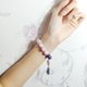 **1.圖上紫鋰輝長約15mm,紫龍晶寬約10mm,流蘇隨意釦飾(紫玉瓍狐仙+堇青石流蘇)長約60mm,整體手圍約16cm。**