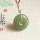 天然和田玉平安扣面包圈吊墜,冰底翠青料,脂份足,玉質細膩,搭配精美多寶手工繩,墜尺寸約28×11mm