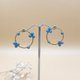 Handmade flower earring with turquoise stone ,brass - 耳環/耳夾/耳骨夾 - 其他金屬 藍色