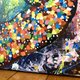 這是一幅由兩幅畫布組成的畫作,您可以跟著自己的感覺和空間擺設將畫作分開懸掛或放在一起。 作品創造的靈感來自瑜伽靜坐的時刻,由畫刀來繪製,您會發現線條、紋路都較為有力、粗曠,顏色較為飽和鮮明,整體畫面更為立體。在抽象的背景中有著豐富交融的色彩,還有些用畫筆自然揮灑的顏料穿梭在其中。人的身體為靜坐坐姿背面,人就像是一朵盛開的蓮花,在藍色的湖水中綻放。此部分也是用畫刀完成,有著多層次的紋理及鮮豔的色彩,如同我們強烈的生命力。