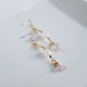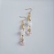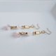 シャープな長方形デザインがとてもお洒落なアクリルフレームストーンに人工水晶にクラック加工が施された淡いピンク色のクラッククリスタル、そのクラッククリスタルの色合いに合う2サイズ小さめのチェコビーズとローズクォーツの3色をちょこんと合わせた揺れ感あるお洒落なピアス/イヤリングとなっております☺