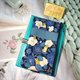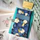 FEN手工小鋪-F系列-小物系列-深藍底藍白花朵兔布書綁筆袋-綁帶型筆袋-束書筆袋-束帶筆袋-綁書筆袋-書本綁帶型筆袋-便攜筆袋-現貨