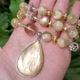 **1.圖上黃金鋰雲母水滴墜高約42mm、寬28.5mm、厚8.3,鍊身黃金鋰雲母圓珠約11.5mm,項鍊(不含墜)總長度約56cm。**
