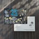 利用金、銀兩色金屬筆在黑色信封封面上手繪出蒲公英插圖,呈現低調質感光澤,中上方藍色手寫英文短語,靜靜傳遞鼓勵與祝福,期盼對方不要自我設限,為夢想堅持並成就自己。