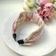 使用日本進口燙金厚棉布包髮箍,上面使用韓國進口粉紅色金蔥織帶(自然光下又拍不出來金蔥色澤..)