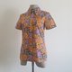 Vintage Orange Purple Floral Print Blouse