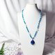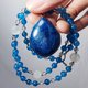 鍊身藍磷灰石藍而清亮、透度表現極佳,**拉長石**藍光閃現、光澤淨潤,**藍月光石**南瓜活潑點綴,為整體神祕藍色調更添動人魅力,是喜愛藍磷灰石的藏友們值得收藏^^