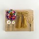 5件套組: 椿花(梳式,約7cm)×1,小花(U型夾,約2–2.5cm)×2,流蘇緞帶×1(約8cm),水引夾×1(約7.5cm)。