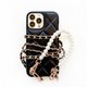 黑色菱格小香風珍珠金鏈手機殼 black leather pearl chains clutch phonecase