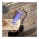 瓶身採用厚實琉璃,手工拉製出藍、紫交織的暈染色彩,
