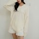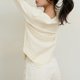 疊穿角狀下襬-假2件圓領口素面長袖毛衣-米白色