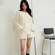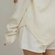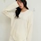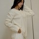 Design description 。假2件素面長袖毛衣 。疊穿角狀下襬 。休閒感寬鬆上衣