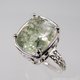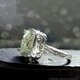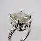 優しいグリーンがキラキラと輝くサンストーンを、唐草と透かし模様の台座にセットしました。