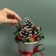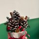 使用材料:松果5個、雪松、肉桂2支、聖誕裝飾配件(金色小花、小松果、橡果、小南瓜等)、紅色裝飾珠5個