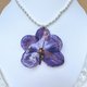 - Royal Purple Vanda orchid necklace with alternating silver pearl beads