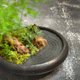 以石擬山,以砂代水,這座極簡盆景延續了枯山水的精神語彙。