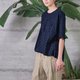 線格單口袋傘襬上衣 - 女上衣/長袖上衣 - 棉.麻 藍色