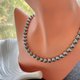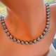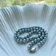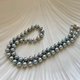 紗織小姐甄選出57顆7-7.5mm高品質日本海水真多麻,連綴成約45cm長的標准串鏈,再由S925純銀元寶扣連接。日本海水真多麻稀有美好,通體銀藍灰色,表面呈現出難以名狀的炫彩色調,自然光下每一顆都分別呈現出各自的七彩光芒炫彩,皮光細膩,微瑕炫彩,似鏡面可照出人影,美得不可方物,僅此一件。