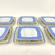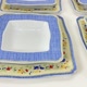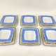 一套優雅的方形德國瓷深餐盤和合適的充電器盤,手繪藍釉和花卉圖案。 來自著名公司 Van Well。
