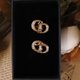 "Christian Dior CD 鑲鑽 鍍金 經典 CD LOGO 形狀 袖扣 附盒