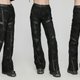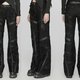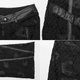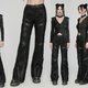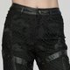 破洞網布牛仔搭配亮光壓膠皮,層次分明,帥氣時尚