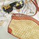 你細看包包上不止是單純草編喔,其實它是有類似蕾絲的織布及草編交織而成,很細緻的!