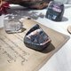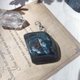 重75g,尺寸約57.1x40.2mm,這顆正面有點帶孔雀眼睛感覺的彩光,背面剛剛好生長的石紋黑點組成一張臉,最上一道黑色像是頭髮,下面兩點是眼睛,真的相當有趣!