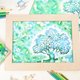 白い大きな花の木が満開に花をつけているストールが作りたくて描いた作品です。