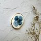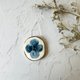絵付陶器の金継ぎラインヘアアクセサリーです❁⃘*.゚丸い形に成形し、丁寧にやすりがけした後、何度かネイビーブルーの絵の具を重ねてお花の模様を描きました( ¨̮ )側面と表面に少しかかるように金継ぎを施しておりますので、横から見ても上品です。