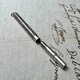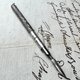 - 這支精緻罕見的法國袖珍伸縮式沾水筆,完美體現了19世紀末至20世紀初的典雅與匠心,它因其僅 7.5公分的收合尺寸 和尾部的吊環,被設計成可隨身攜帶、懸掛於懷表鍊或項鍊上的飾品,是當時紳士淑女的優雅伴侶。筆桿上飾有繁複細膩的浮雕花紋