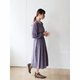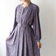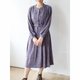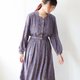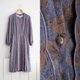 日本製昭和風復古紫色圖騰花朵長袖古著洋裝-D718
