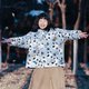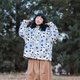 淺藍色熊貓 連帽寬鬆毛絨絨棉服 無性別穿搭