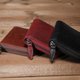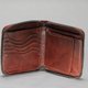 国内産ベジタブルタンニン鞣しのキメ細やかなキップ(仔牛)革にWAX加工を施した高品質な素材を用いた二つ折り財布です。