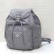 【LA LUNE】絕版古董品 Prada 銀灰色銀標雙肩包 後背包 背囊 中古包 二手包