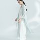 天絲本身是環保材質,木漿提取,薄薄透透,夏季常用。長衫自帶靦腆的書卷氣,可防曬防蚊,亦可擋空調的寒氣,是有用之美。海鹽藍不飽和的溫潤感很擡膚色,有風路過時,衣袂飄飄,像一首詩。