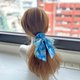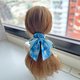 使用美國品牌棉布搭配製作成長尾蝴蝶結、加上緞帶和釘珠做成的髮圈,氣質浪漫,無論上班或休閒聚會都適合配戴。