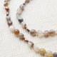 ネックレスのベースはしまメノウ、一粒ずつノットを作って仕立てています