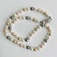 オールノットネックレスの特徴として、万が一糸が切れた場合でもばらばらにならず最小限で抑えられる点や、玉同士が密着していないので擦れあいにくく傷も付きにくい点・首回りにフィットしやすくなっている点等がございます。この仕様は特に海外で人気があり、比較的高品質アクセサリー類によくみられる仕様です。※弊社の自社工場にて塗装されたパールになります。品質の状態も維持されており、剥がれや大きな目立った傷などもございません。稀にピンホールや小さい凹み等が見られる場合がございますが、品質に問題は無く許容範囲とさせて頂いております。