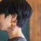 軟陶製作的秋葉的掛耳式耳環和耳環組。