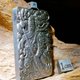 - M鐵 關公佛牌 長:49.6mm(含墜頭54mm) 寬:33mm 厚:5.2mm 重量:63.56g 材質:M鐵 無電鍍 產地:瑞典 Muonionalusta 鎳鐵隕石 中文名:曼德拉隕鐵