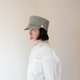 シャンブレーツイルが織りなす上品なケピスタイル。マットな金ボタンがアクセントのちょっぴりミリタリーテイストなキャスケット。ストレートなシルエットで顔周りもすっきり見えるデザインです